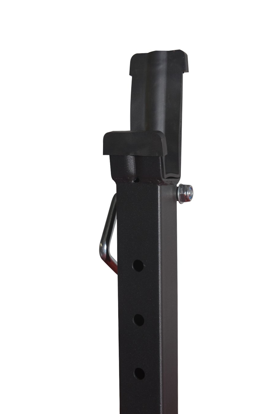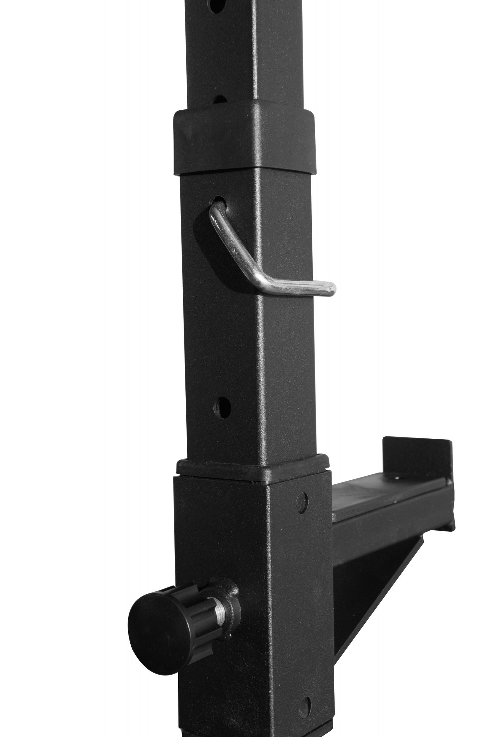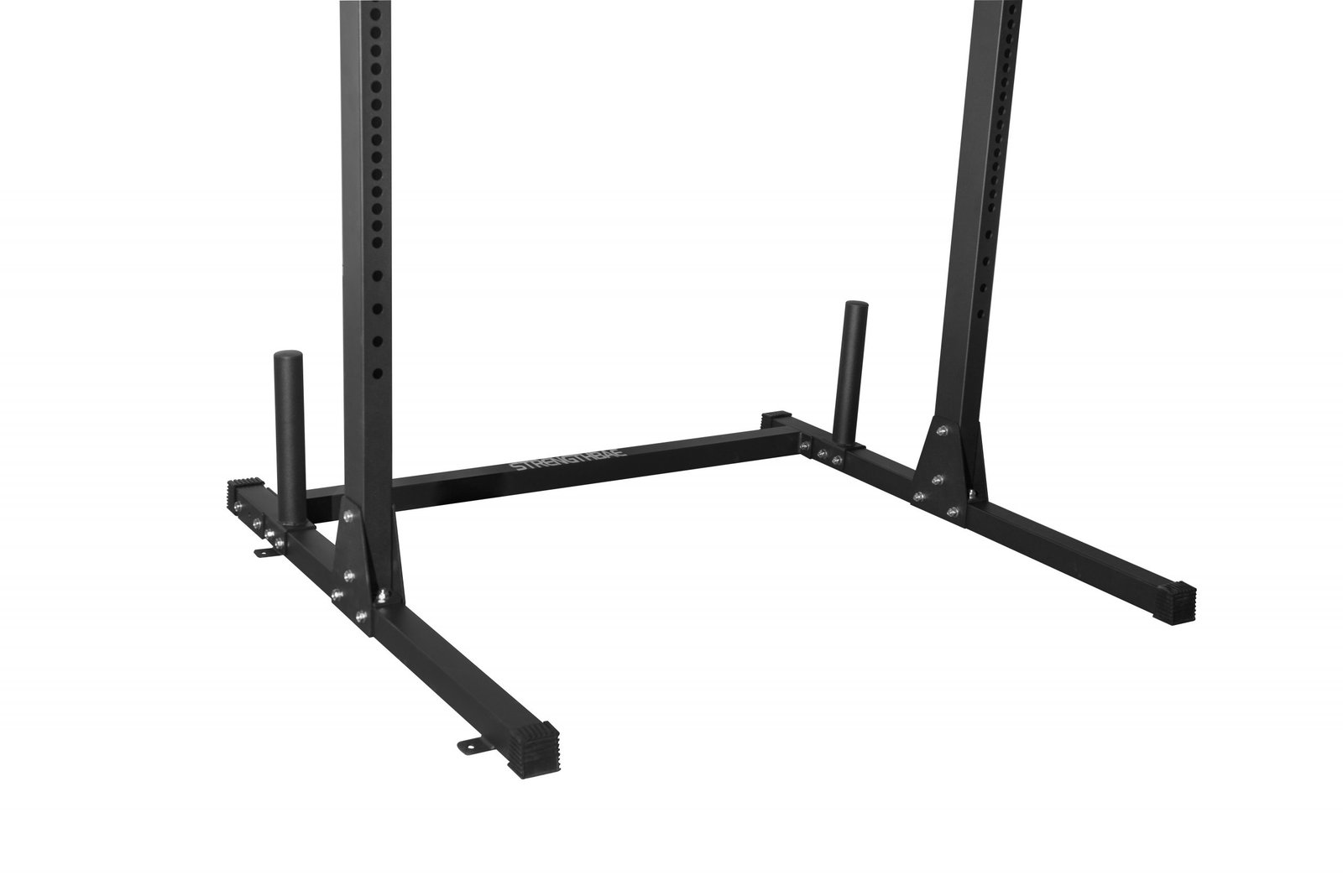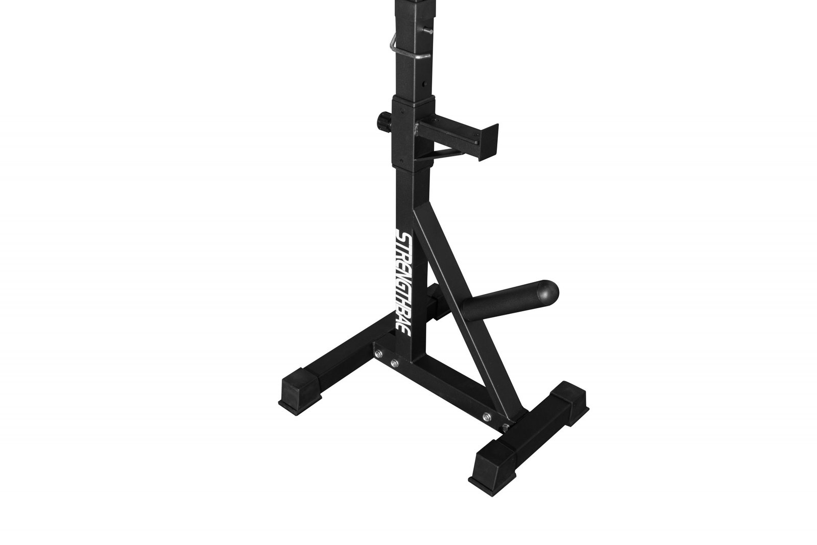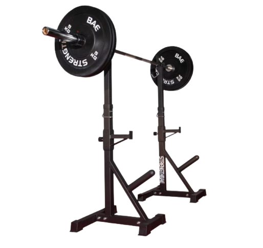 Squat Stand Strengthbae didesain untuk memaksimalkan fungsi dari Free Squat Stand, yakni keterjangkauan dan kepraktisan dalam penggunaan. Karena kaki tidak saling menyambung, squat stand ini mudah untuk dipindah-pindah. Ketinggian tiang dapat diatur sesuai kebutuhan. Meskipun fungsi utamanya digunakan untuk squat, tapi desain squat stand Strengthbae tetap nyaman digunakan untuk bench press. Squat Stand Strengthbae juga memiliki weight plate storage untuk 5cm plate. Dengan ditambahkannya plate pada stand, kestabilannya akan meningkat drastis.