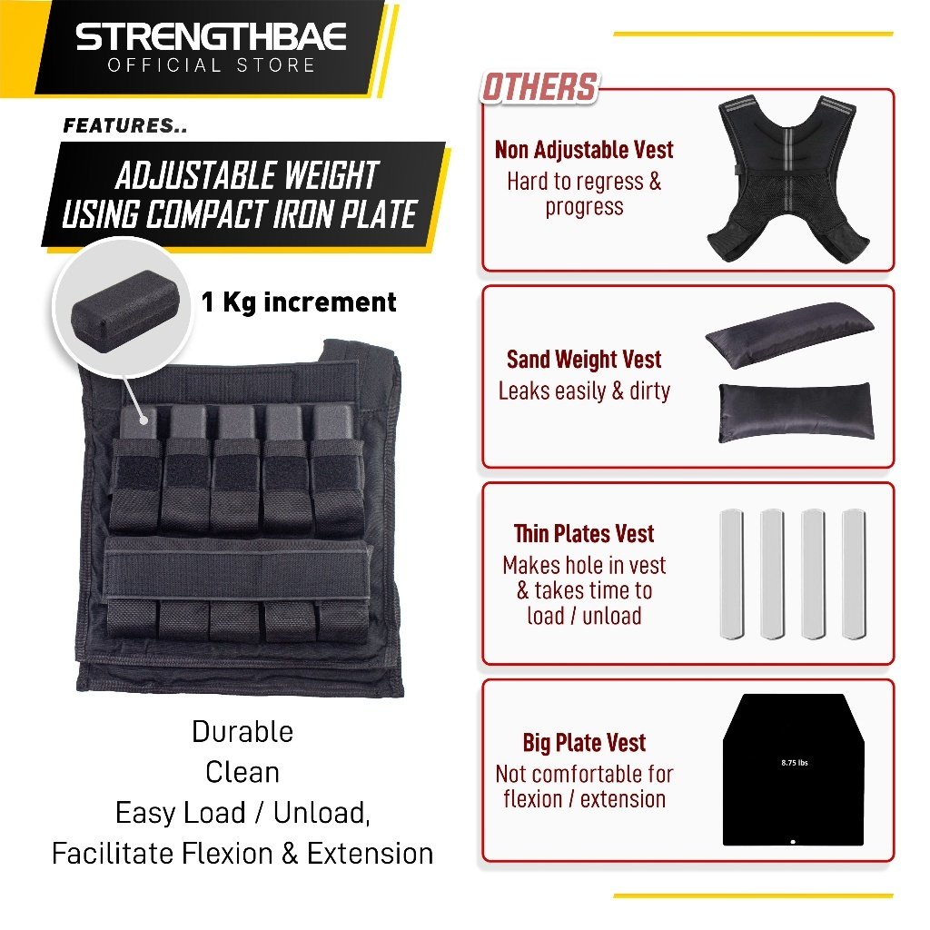 Mau menambah kesulitan gerakan tanpa menggenggam apapun? Pakai Adjustable Weighted Vest Strengthbae saja!