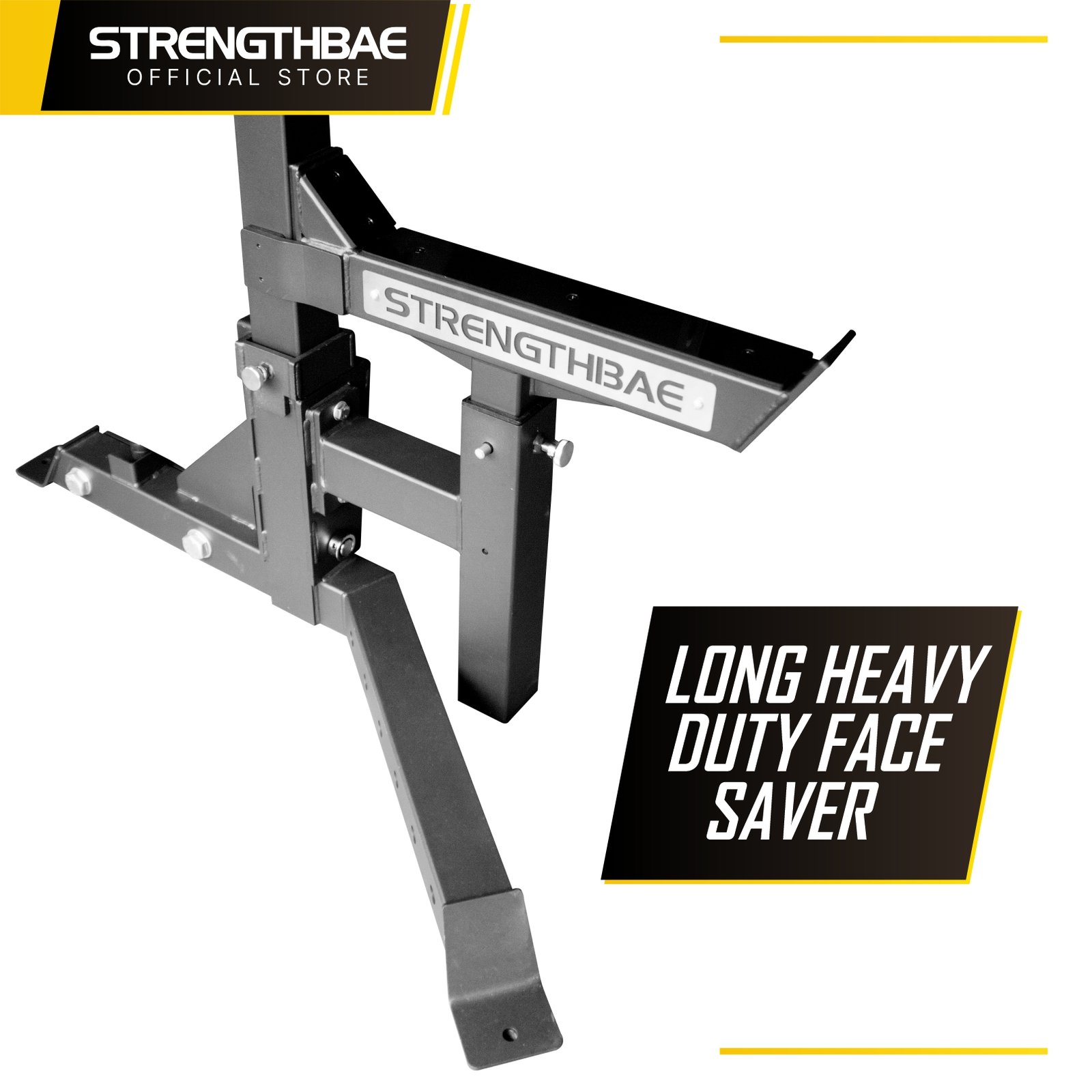 Safety arm pada combo rack berfungsi untuk face saver saat bench press. Umumnya safety arm pada combo rack tidak didesain untuk bail out squat, tapi safety arm combo rack kami agar cukup tinggi untuk safety saat squat.
