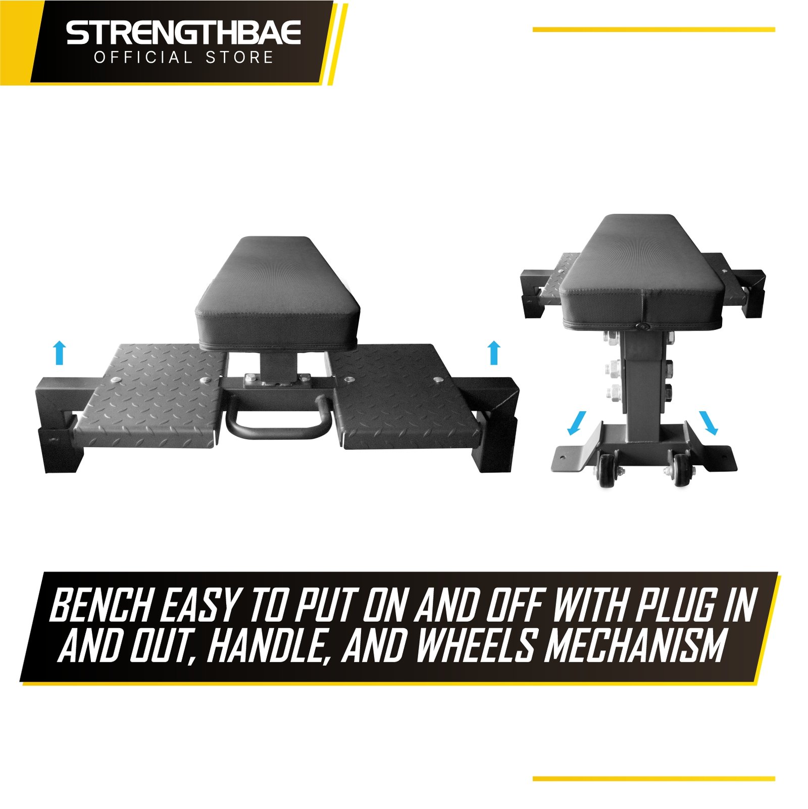 Combo rack sudah include Flat Bench yang heavy duty yang dapat dilepas kalau kamu ingin squat. Bench memiliki dimensi sesuai standar IPF (International Powerlifting Federation). Bench menggunakan thick fat pad yang tebal dan penutup pad yang digunakan tipe anti selip. Kaki dasar bench tipe 1 kaki, sehingga kamu tidak perlu risih kaki menabrak kaki-kaki bench ketika sedang melakukan arching.