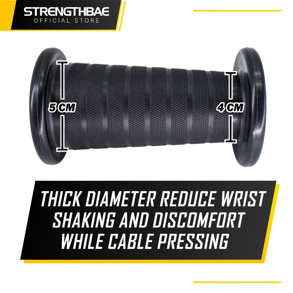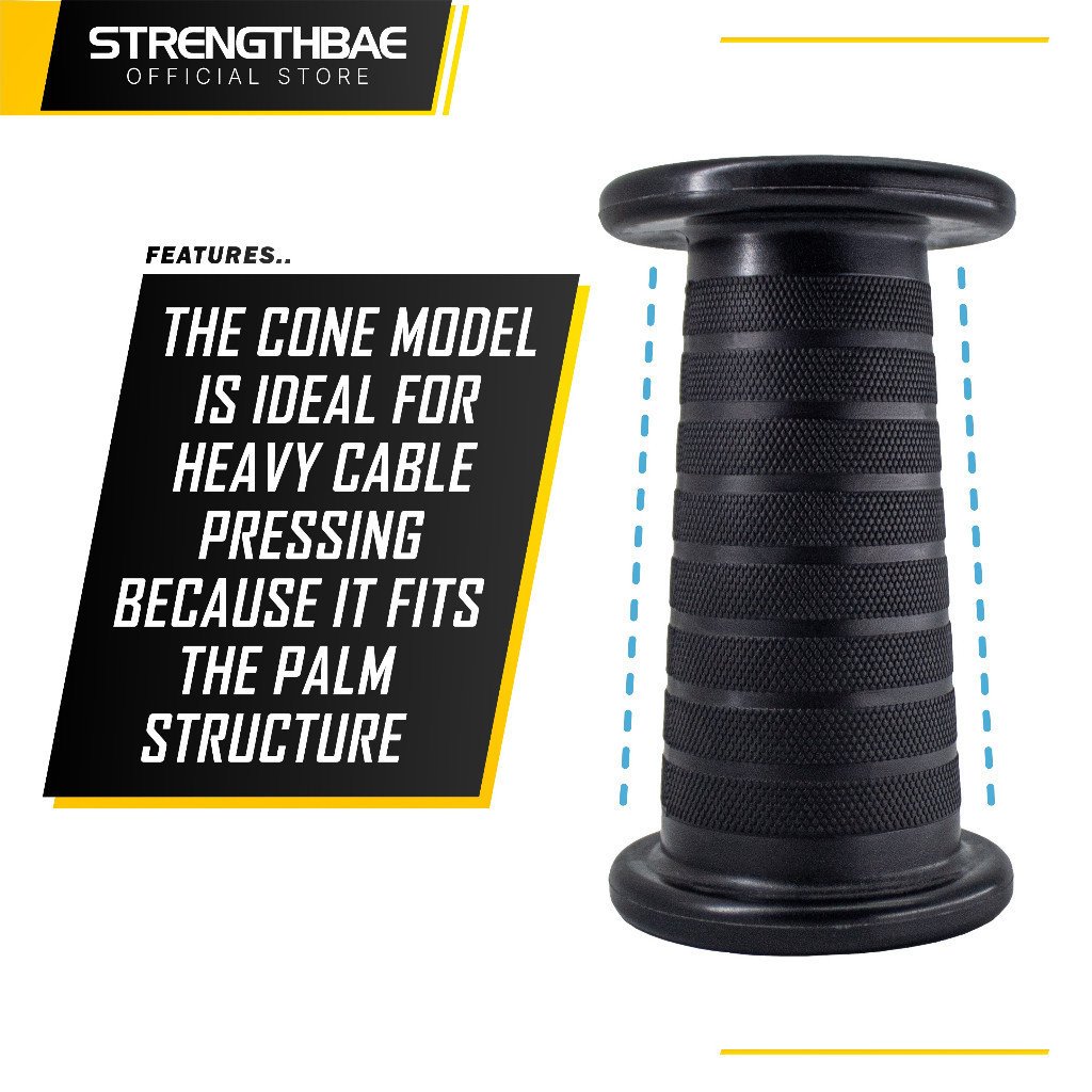 2. Perfect For Pressing Exercise Karena luas permukaannya besar dan berbentuk cone tadi, handle ini sangat nyaman digunakan untuk pressing exercise seperti chest cable press baik incline, flat, maupun decline. Pressing exercise dengan kabel sulitnya adalah menjaga keseimbangan handle di telapak karena arah beban selalu ke arah pulley dan handle yang kecil akan membuat wrist dan lengan bawah kamu goyang goyang. Nah dengan handle yang tebal dan berbentuk cone ini kamu bisa fokus mendorong saja. Selain itu luas permukaan yang besar juga membuat beban tersebar merata di wrist, cocok untuk kamu yang mudah sakit di pergelangan.