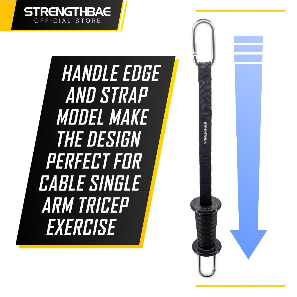 3. Double Unlooped Carabiner With Padding Edge Umumnya bentuk D-Handle akan dikelilingi besi memutar atau strap memutar, nah tidak dengan Cone D-Handle ini. Setiap sisi cone diberi carabiner yang besarnya melebihi ukuran lubang cone, sehingga carabiner tidak dapat masuk ke lubang handle. Desain ini membuatmu bisa mengaitkan 1 sisi D-Handle saja ke cable machine. Selain itu sisi D-Handle diberi penahan, sehingga kamu dapat melakukan single arm neutral grip exercise dengan nyaman, cocok untuk tricep extension dan hammer curl.