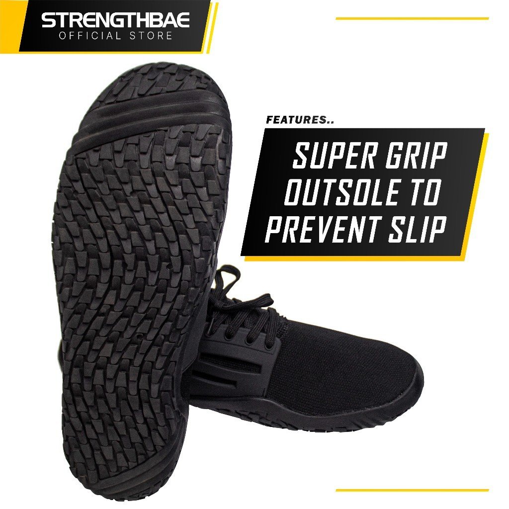 Material outsole mengcopy deadlift slippers Strengthbae yang terkenal sangat kesat, nyaman dipakai squat, deadlift, dan bench press. Sol samping juga tinggi sehingga memberi lateral support saat wide stance squat atau sumo deadlift.