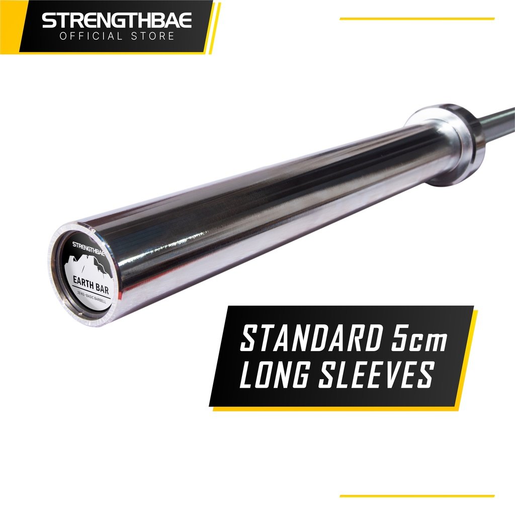 Barbell Sleeves adalah bagian ujung barbell tempat untuk menaruh beban. Earth Bar dari Strengthbae memiliki barbell sleeves standar dengan diameter 5 cm sesuai dengan barbell di gym pada umumnya. Panjang dari ujung sleeves ke ujung sleeves juga sesuai standar yakni 2,2 meter sehingga dapat digunakan di rack, karena banyak barbell yang panjangnya tidak sampai 2 meter dan tidak muat di rack. Selain itu ujung sleeves juga cukup panjang untuk menaruh lebih dari 200kg bumper plates tebal dan lebih dari 300kg iron plate.