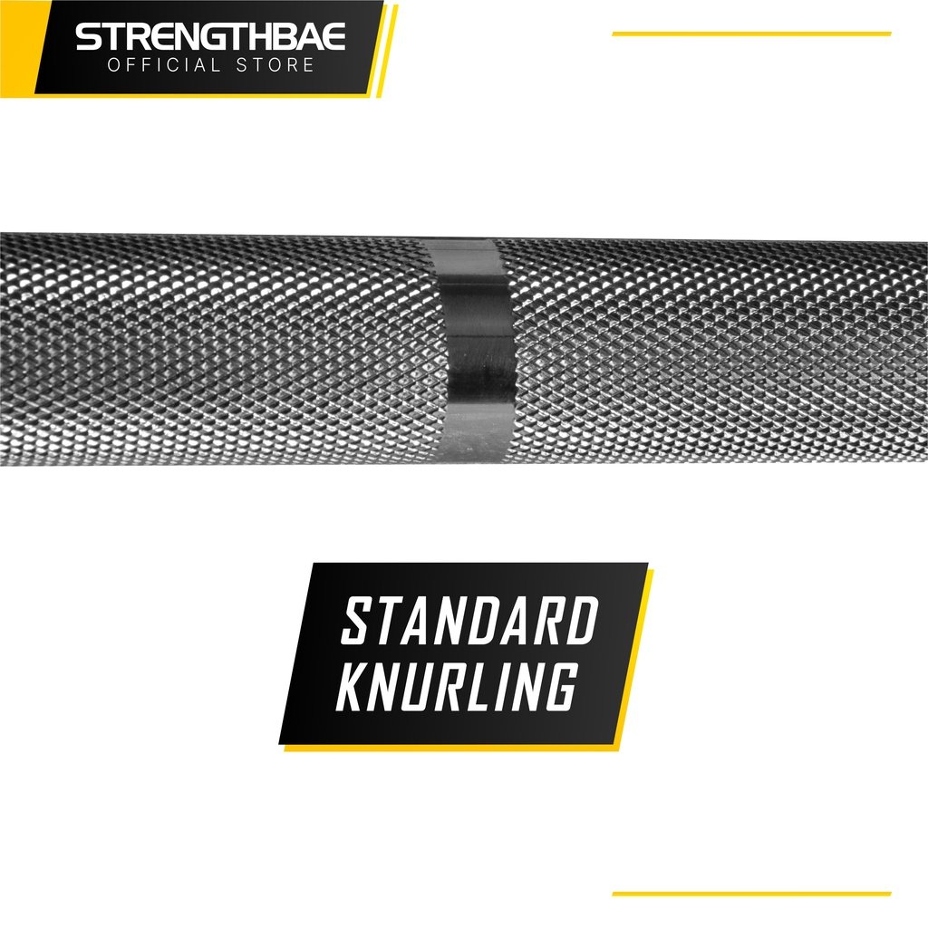 Knurling adalah garis bersilangan pada batang barbell yang difungsikan untuk meningkatkan friksi antara telapak tangan dengan batang barbell. Knurling yang baik akan membuat barbell nyaman digenggam tanpa mudah tergelincir dari tangan ketika beban mulai berat. Selain itu finishing chrome juga membuat batang barbell akan tahan dari karat.