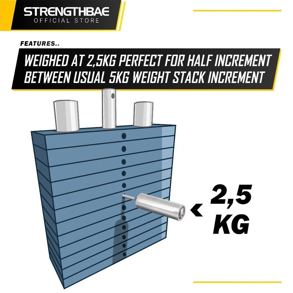 1. Weighed at 2,5kg Pin Extender ga Cuma dipakai untuk nambah beban saja, tapi bisa sebagai transisi beban. Kalau kamu lihat rata-rata peningkatan beban di weight stack cable machine adalah 5kg. Nah pin extender ini memiliki berat 2,5kg, cocok banget buat peningkatan transisi sebelum colok ke beban selanjutnya.