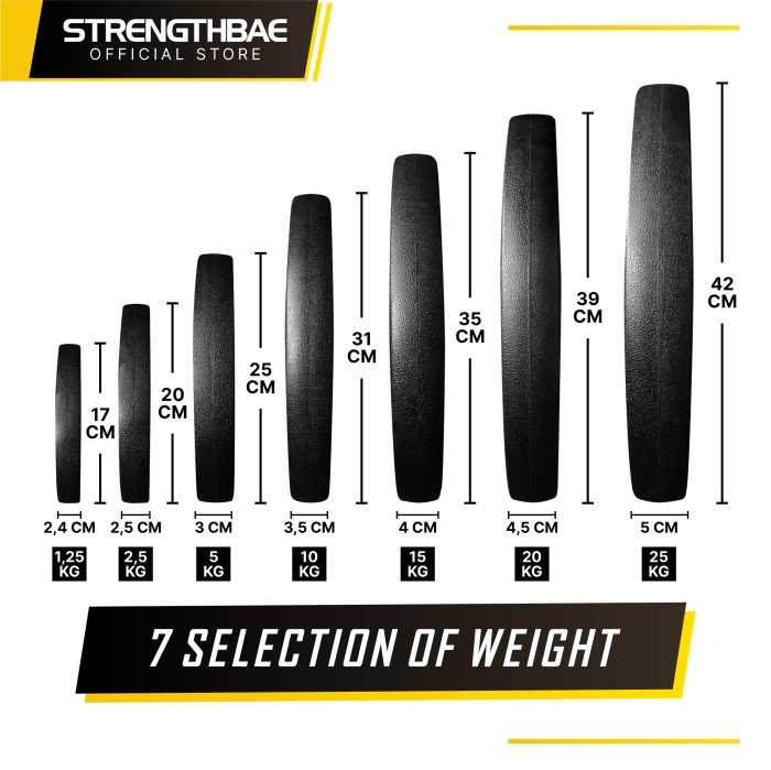 Rubber Weight Plate 3cm & 5cm STRENGTHBAE Plat Beban 1,25kg 2,5kg 5kg 10kg 15kg 20kg 25kg Plates 1,25 2,5 5 10 15 20 25 kg