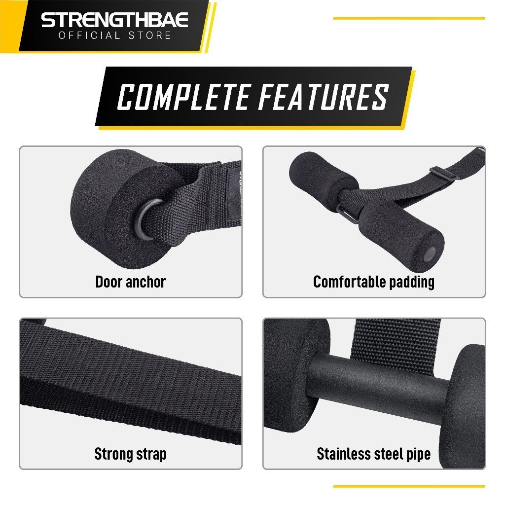 Selain untuk hamstring curl bisa juga untuk sit up anchor, jadi jauh lebih hemat daripada sit up bench tapi multifungsi. Bisa juga untuk sissy squat ala bodybuilder tanpa sissy squat machine. Setiap paket sudah mendapat strap yang heavy duty, pengait dengan padding tebal, dan juga door anchor.