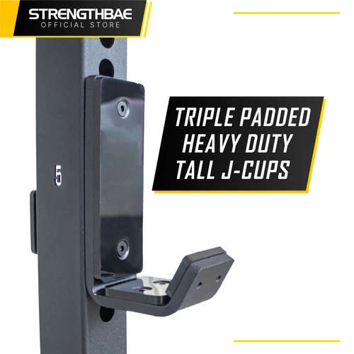 J-Cups yang diberipun sudah model triple padded dan bent style yang heavy duty, seperti yang dapat ditemui di half rack dan power rack kami.