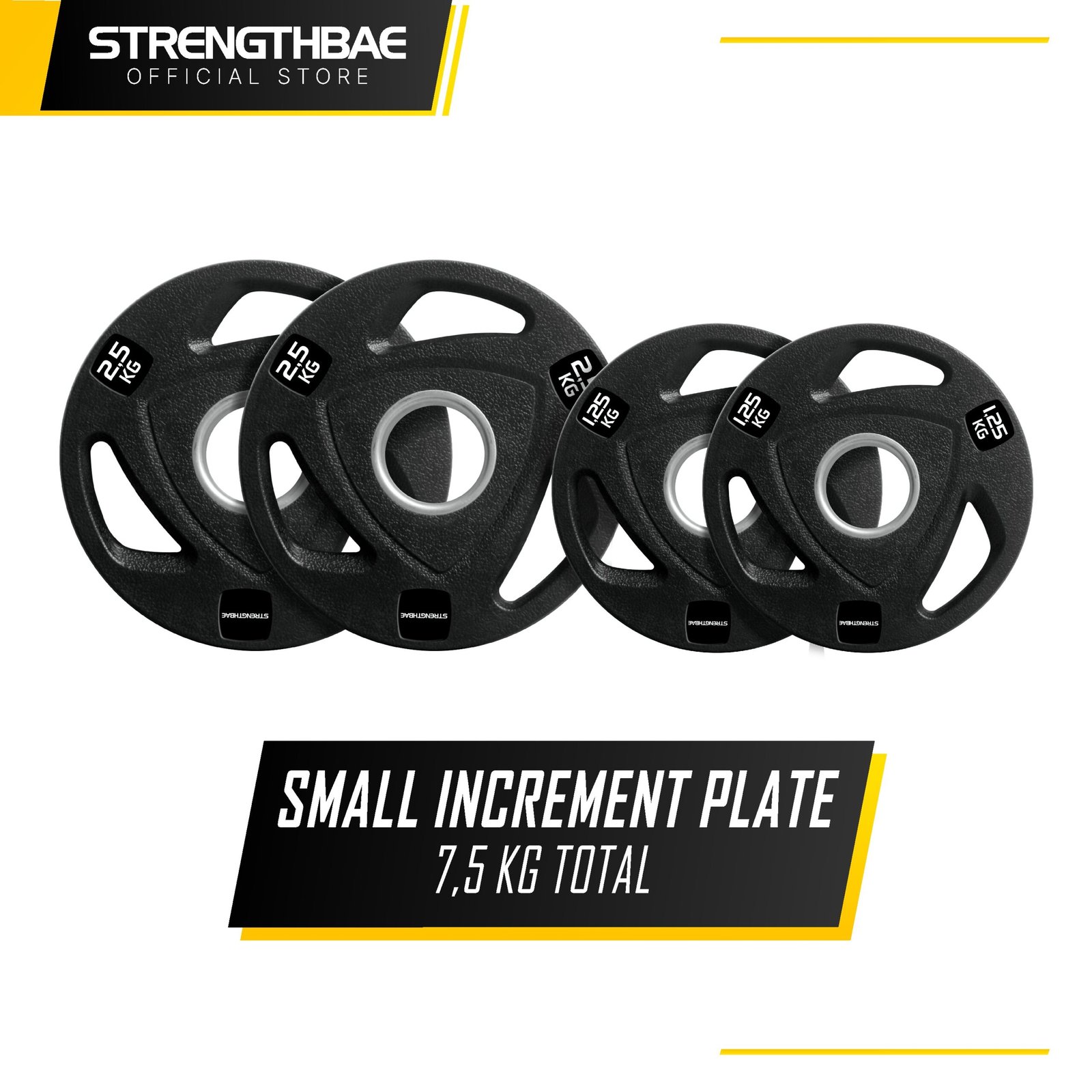 – 7,5kg total Small Plate (2pc 1,25kg dan 2pc 5kg) Lengkap!