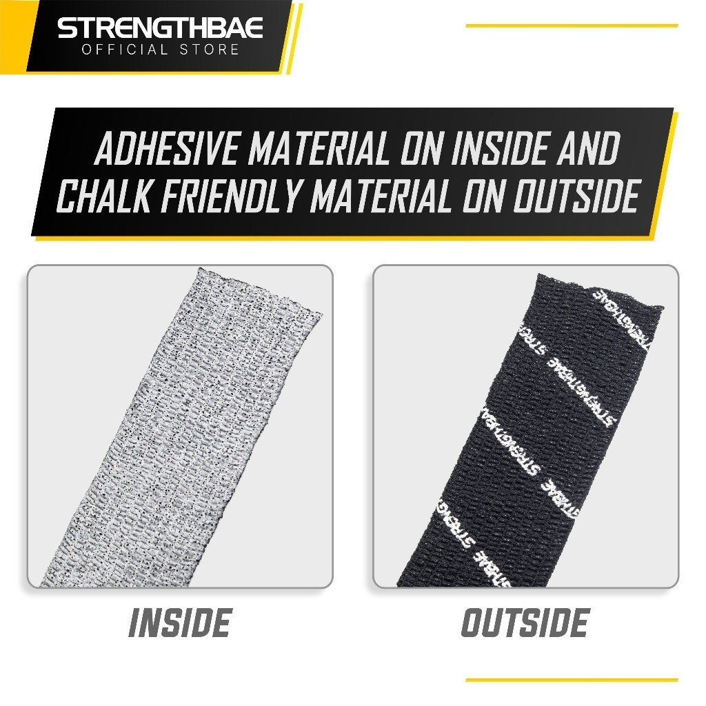 1. Material Made For Lifting Jangan salah pilih bahan, karena banyak tape sebenarnya untuk kinesio tape / medical tape / sport tape yang fungsinya untuk mengurangi rasa sakit pada sendi atau otot tertentu, bukan untuk melindungi jempol anda dari tajamnya knurling barbell. Walaupun bentuknya sama, material yang digunakan berbeda, thumb tape Strengthbae murni ditujukan untuk kamu yang suka hook grip!